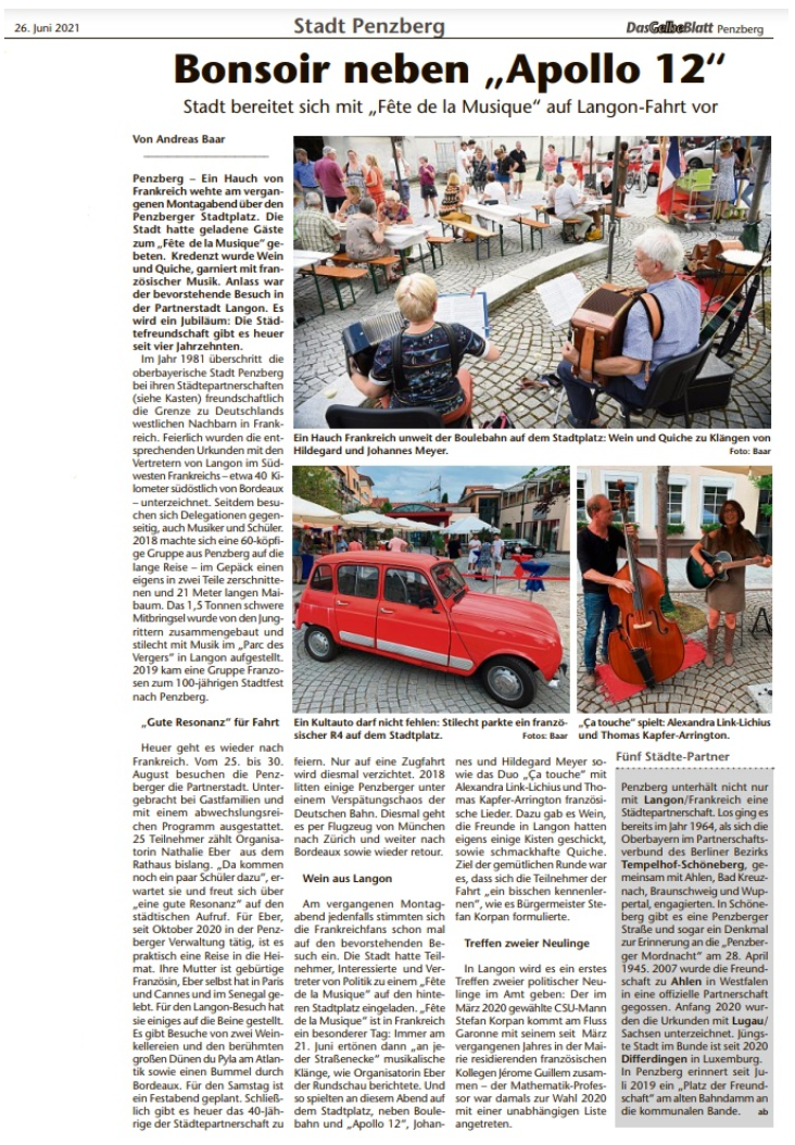 Fête de la musique in Penzberg - Münchner Merkur/Penzberger Merkur vom 23. Juni 2021