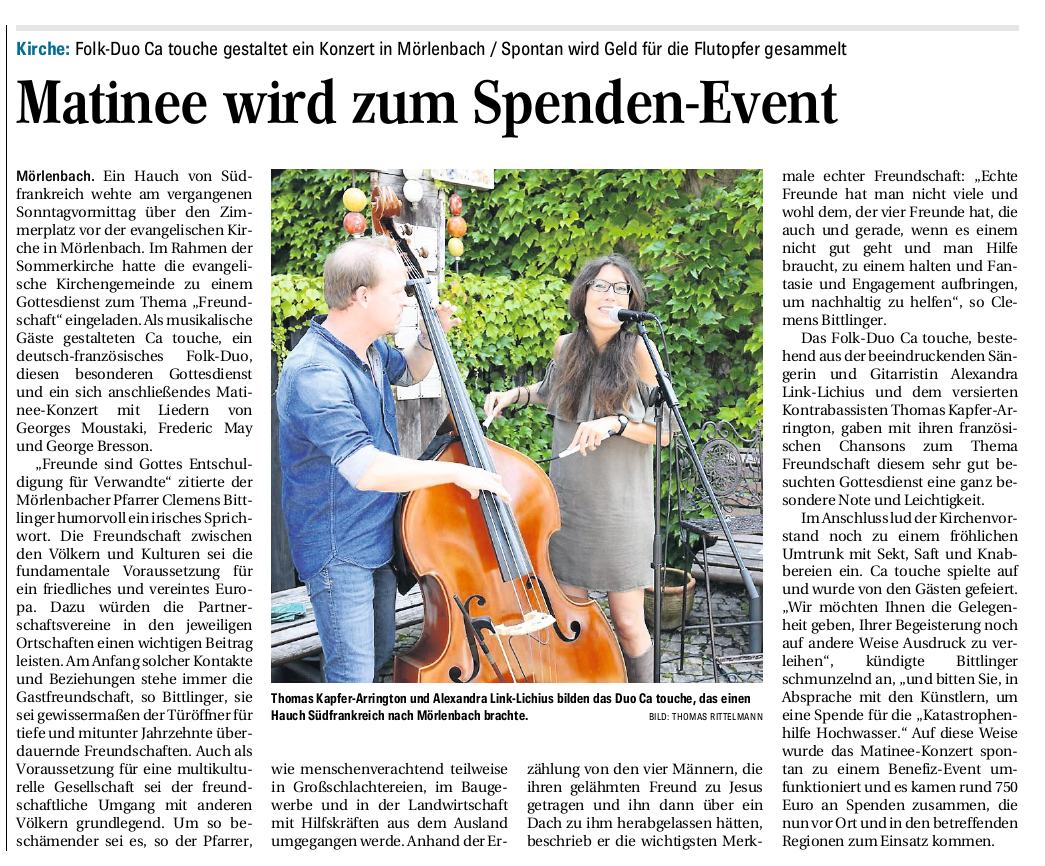 Benefizkonzert Hochwasserhilfe in Mörlenbach/Odenwald 18. Juli 2021